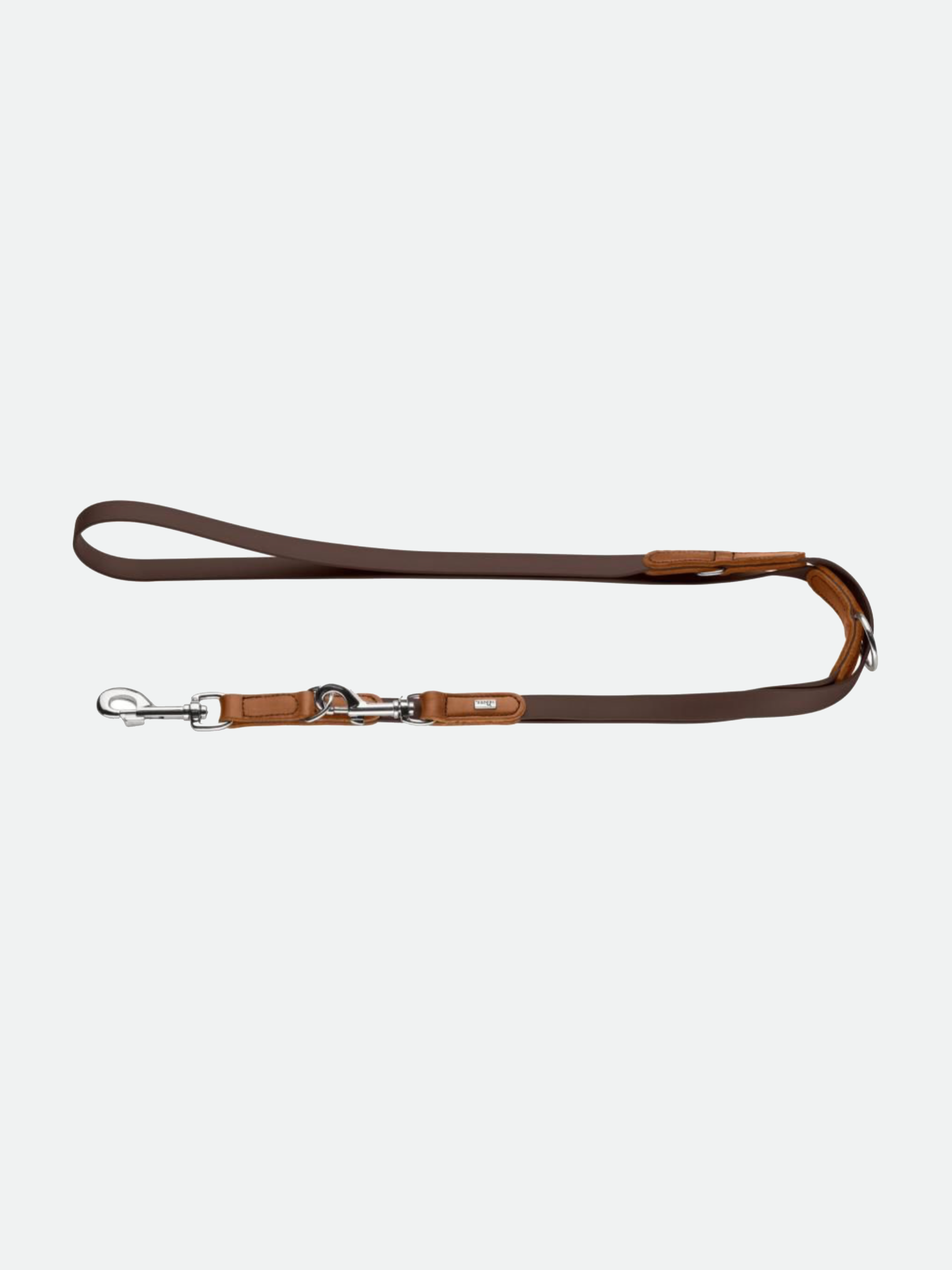 Wolmar hundeline af mærket Hunter. Smart line i okselæder og BioThane®, som er et rivefast og vandafvisende materiale, der er let at pleje. 3-punkt justerbar. Med flotte kontrastsyninger.